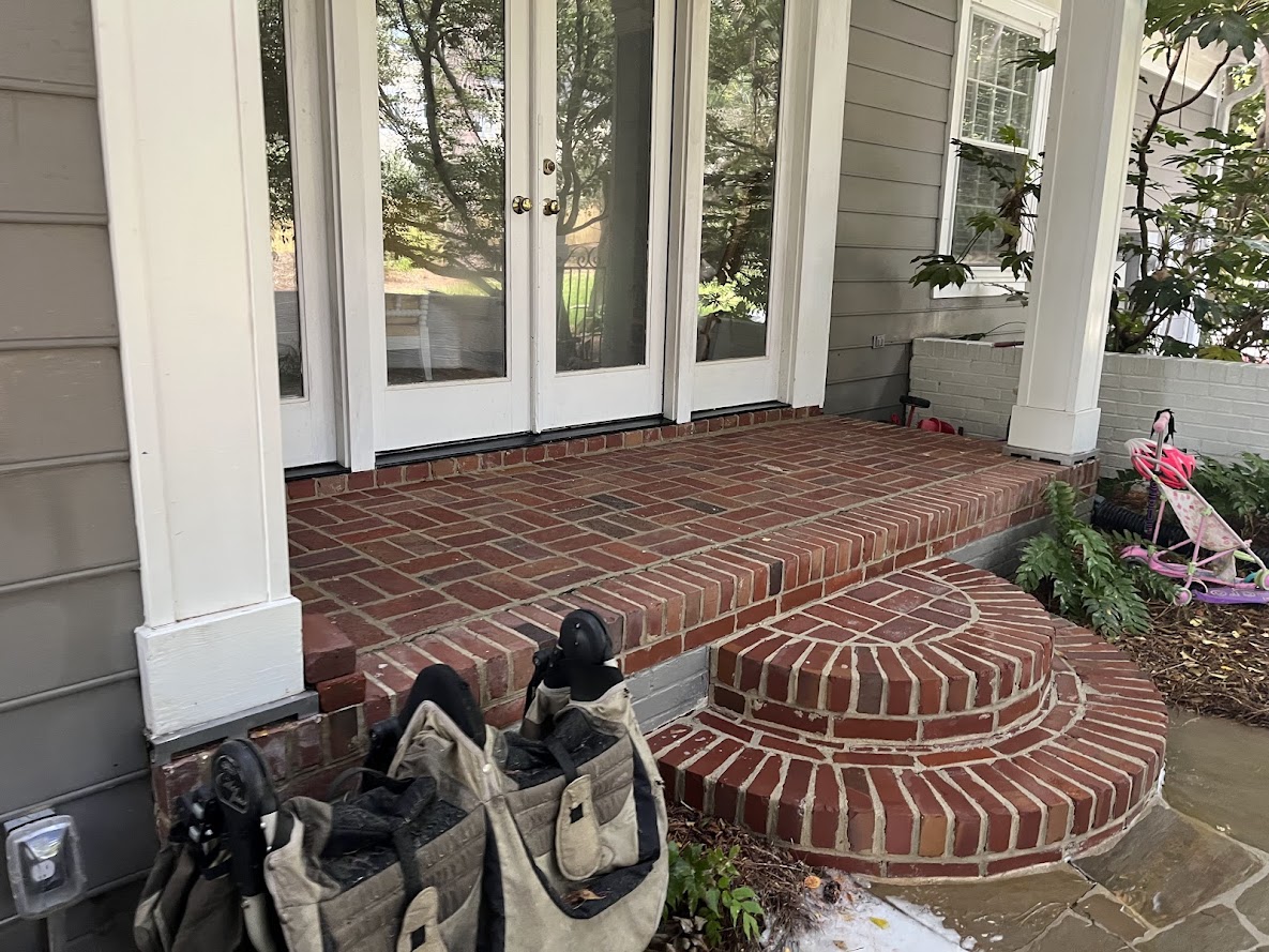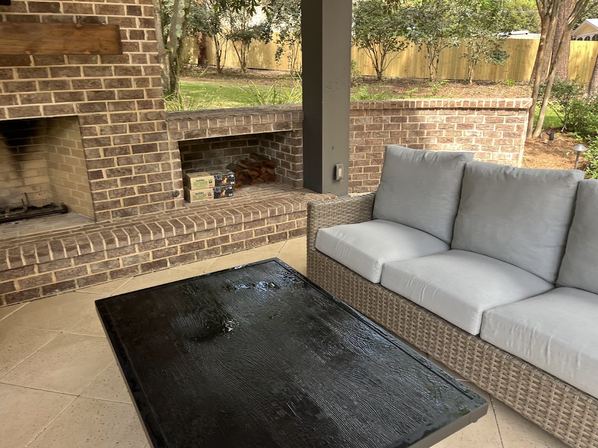 We did not use any pressure on these surfaces, so there was no chance of damaging the travertine, brick, or the furniture. For delicate materials like travertine and older brick, avoiding high-pressure washing is important, so a softwash approach was the right choice for this job. The goal was to remove soil and organic buildup while protecting the integrity of the materials.