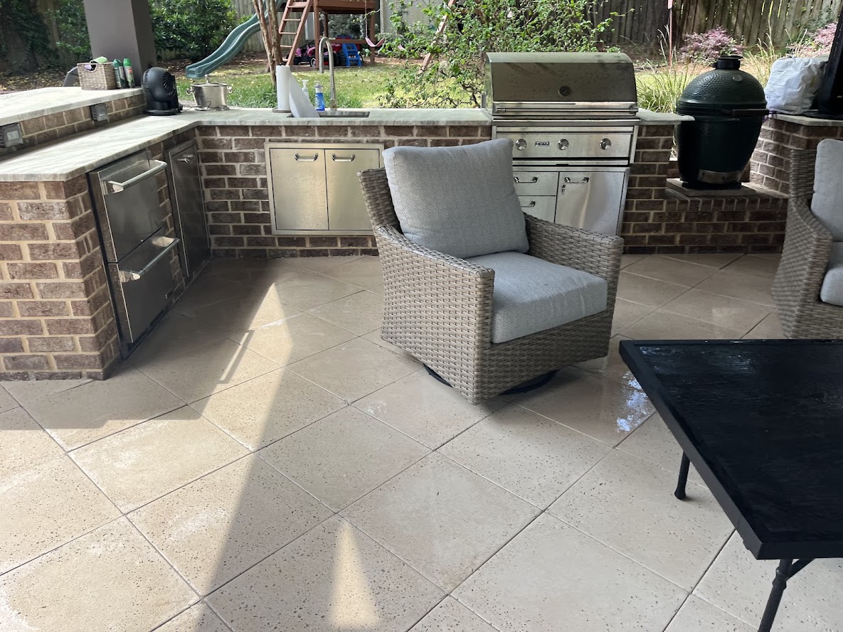 The result is a patio that looks cleaner and is ready for use. Removing the dirt and grime makes the space more inviting, and it helps prevent future buildup that can lead to staining or biological growth. Now the customer can get back to entertaining and enjoying his summer with family and friends, using the patio, steps, and seating areas without concern.